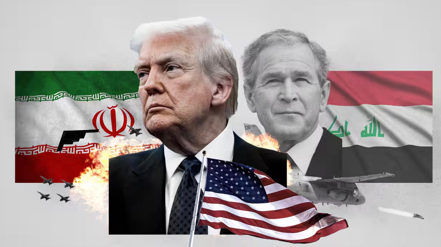 To understand the logic of this “preventative” war, we must look back to another moment of American unreality: the 2003 invasion of Iraq. The script is the same. The actors are only slightly changed. In January 2003, President George W. Bush stood before the United States Congress to warn of a “grave danger” from a dictator armed with weapons of mass destruction (Bush, 2003). Twenty-three years later, in the same chamber, President Trump used his State of the Union address to paint a strikingly similar narrative: a rogue regime, a looming nuclear threat, and a ticking clock (Al Jazeera, 2026).