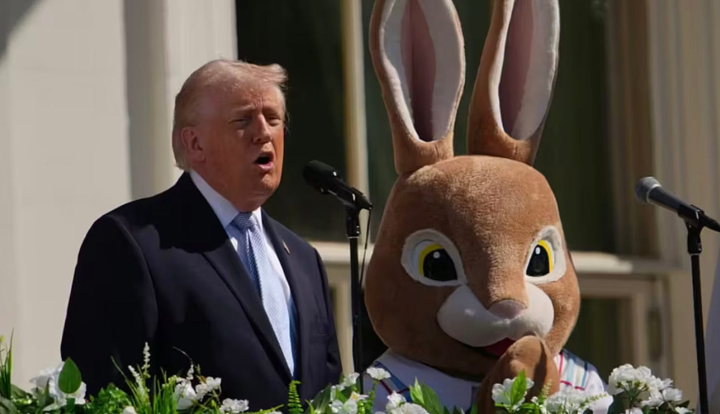 If you had written this scene in a novel, no editor would have let you keep it. It would have been cut for being too heavy-handed, absurd, and obviously symbolic. But it was real. The President of the United States, threatening to end a civilisation, flanked by the Easter Bunny. It was perhaps the clearest marker (or sign from whatever gods still watch over this experiment) that America has truly, irreversibly lost its way.