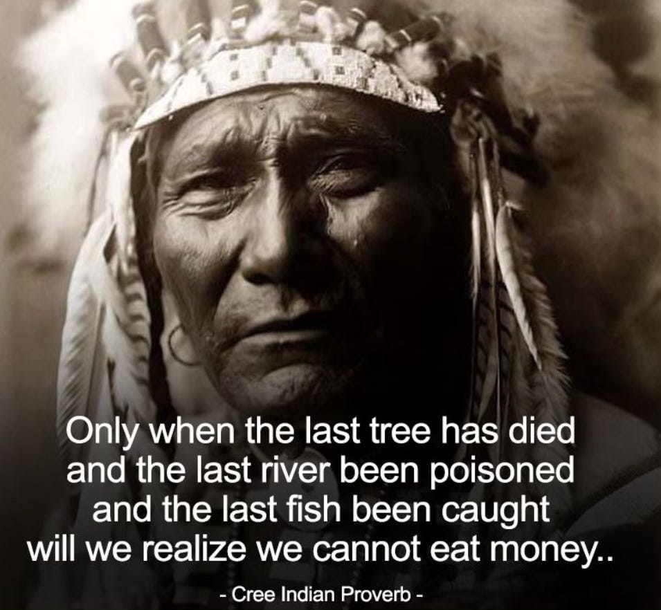 “Only when the last tree has died, and the last river has been poisoned, and the last fish has been caught will we realise that we cannot eat money.”